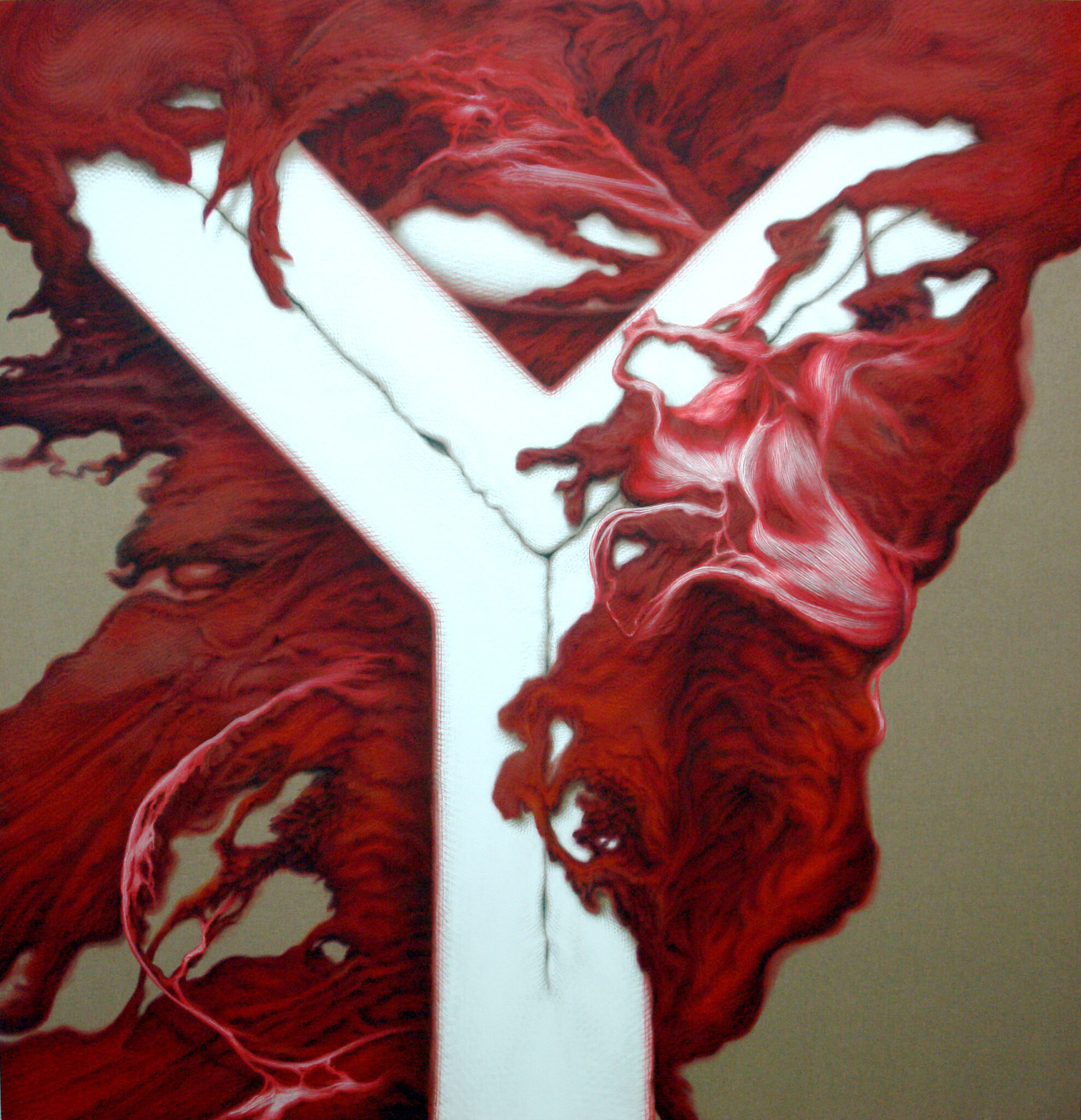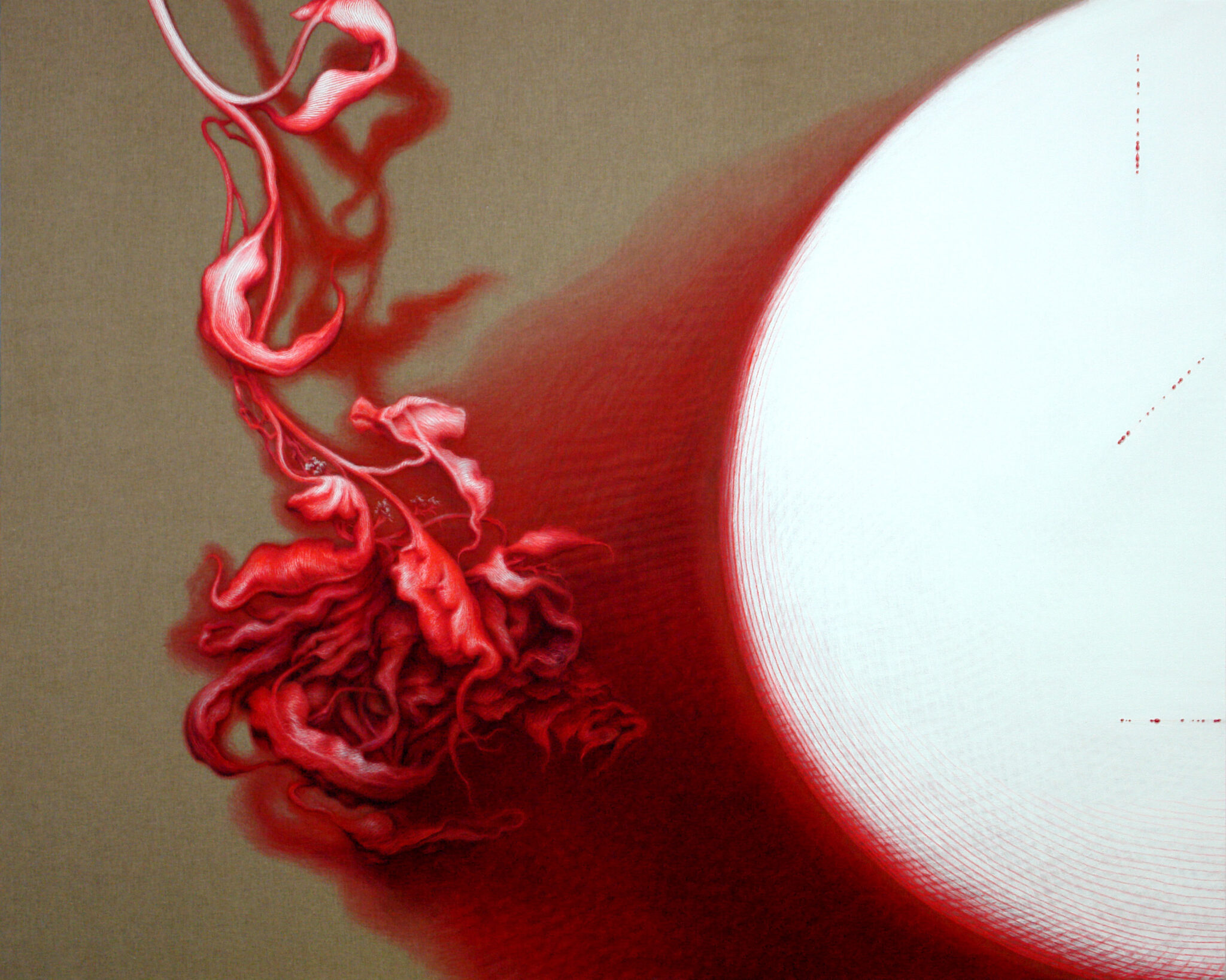 En ese mismo contexto aparece la tercera visión del proyecto: el cuerpo. En las obras de Zurita, el cuerpo no se presenta como una entidad aislada ni como una posesión estrictamente individual, sino como un elemento dentro de un entramado vital que comparten lo animal y lo vegetal. Los procesos orgánicos—la circulación, el crecimiento, la transformación— se vinculan así con los ciclos y dinámicas de la naturaleza.